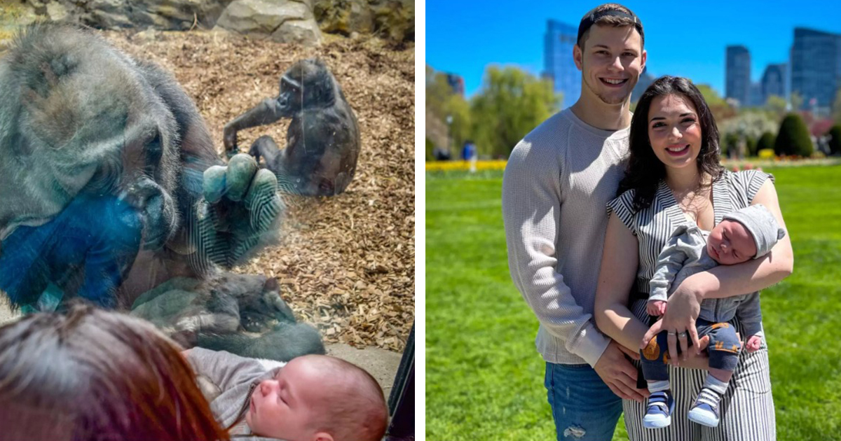 C’est le moment émouvant d’un visiteur dans un zoo qui présente son nouveau-né à