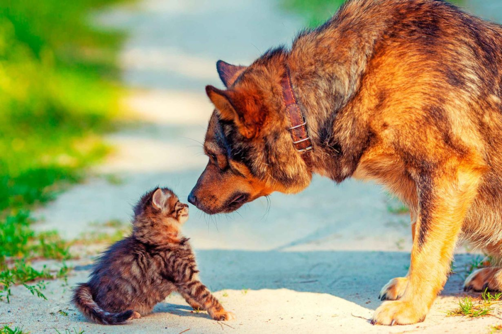 Matolla – koira, joka hellästi halailee pientä kissaa. Hän nosti katseensa omistajaan, ikään kuin kysyen: ”Saanko näin tehdä?”
