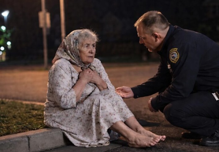 Paikalle saapunut poliisi kohtasi tyhjän kadun keskellä vanhan naisen, joka istui vain ohut yöpaita yllään ja tärisi kylmästä. Tuolloin poliisi ymmärsi tilanteen vakavuuden. Naisen katseessa ei ollut hämmentynyttä epävarmuutta, vaan puhdasta kauhua.