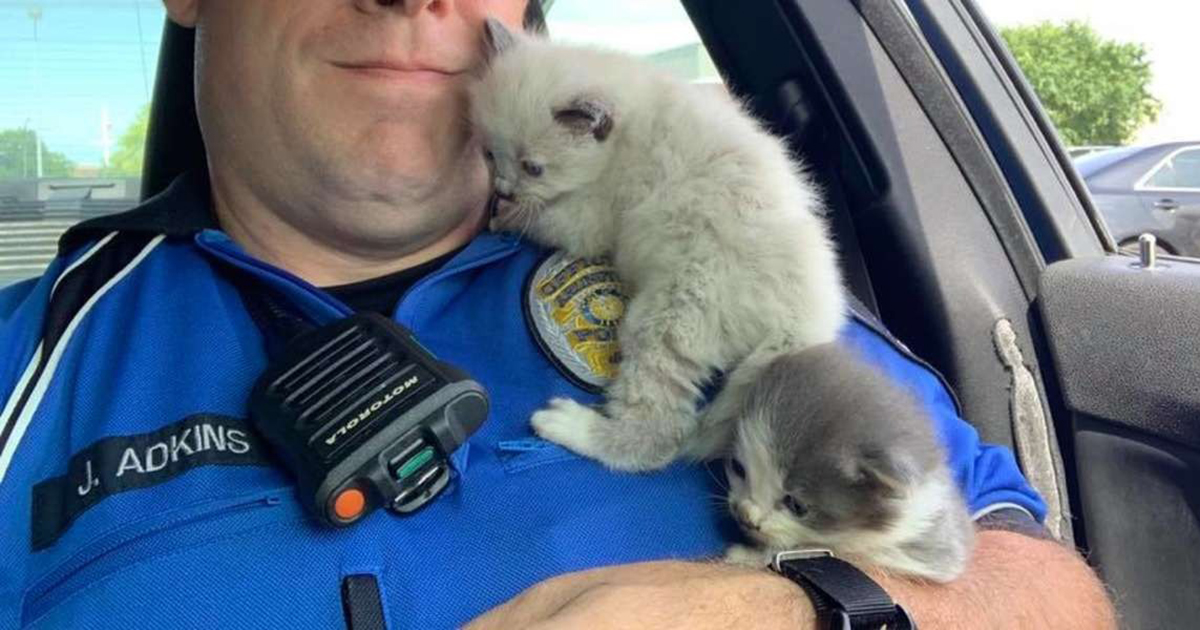 L’officier Adkins a soigneusement mis les deux chatons en sécurité sans causer de mal.