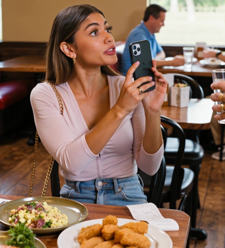 Kun lasku tuotiin, 112 dollaria, hän kieltäytyi maksamasta ja väitti tulleensa “epäkunnioitetuksi”, samalla kun hän jatkoi valituksiaan kameralleen ja marssi ulos. Ravintola jähmettyi.