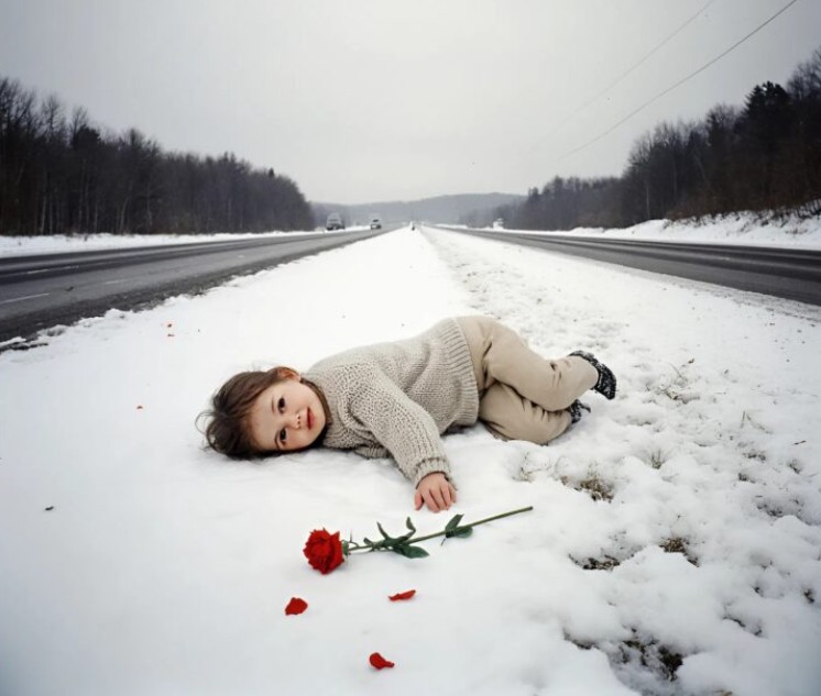 Jääkylmän talvi-illan palaillessani töistä kotiin, mieleni oli täynnä päivän väsymystä. Kadut olivat autiot, ja ilma puraisi kasvoja hengityksen salpaavalla kylmyydellään. Juuri kun olin kääntymässä lyhintä reittiä pitkin, huomasin liikkumattoman pienen hahmon liukkaalla jalkakäytävällä. Lähestyessäni näin, että se oli noin viisivuotias tyttö, joka piti kädessään yhtä ainoaa punaista ruusua – ja kauhu valtasi minut. Hänen katseensa oli niin tyhjä ja kaukainen, että hän näytti olevan kuin toisesta maailmasta. Kun polvistuin hänen viereensä ja kysyin, miksi hän oli siellä, hänen tärisevistä huulistaan kuului sanat: “Äiti nukkuu täällä.” Veri hyytyi suonissani.