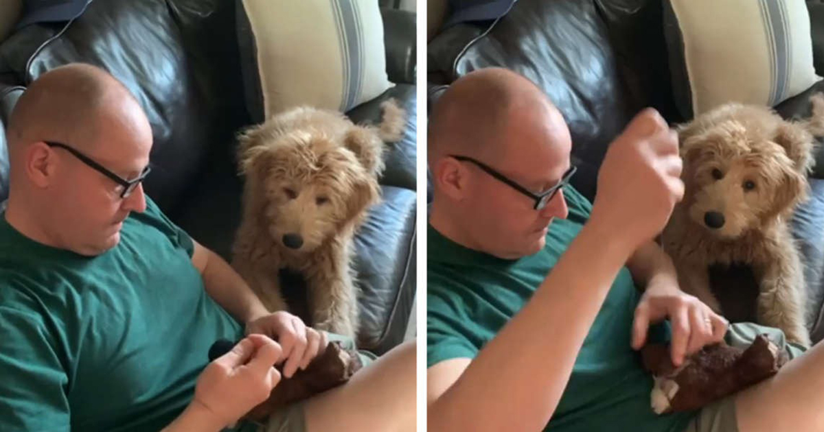 C’est parce qu’il a accidentellement fait un trou dans son jouet préféré – un animal en peluche marron qu’il emporte partout avec lui. Bien sûr, le golden-doodle adore sa famille, mais cette petite peluche marron occupe une place spéciale dans son cœur.