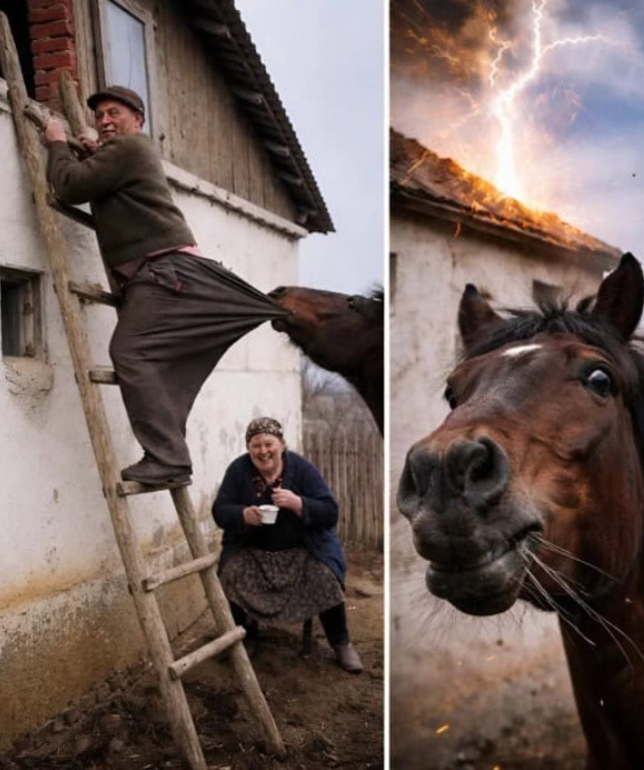Juuri kun Fedor raivokkaasti alkoi laskeutua alas, kirkkaansininen taivas rävähti sokaisevalla valolla. Odottamatta putosi valtava salama, ja iskeytyi juuri siihen kohtaan, missä Fedorin kädet hetkeä aiemmin olisivat olleet – kattojen reunaan. Kuului räsähdys, kipinät lensivät ja ympärille levisi terävä palaneen haju. Pihalla naurettu hiljentyi äkkiä kylmään, syvään hiljaisuuteen.